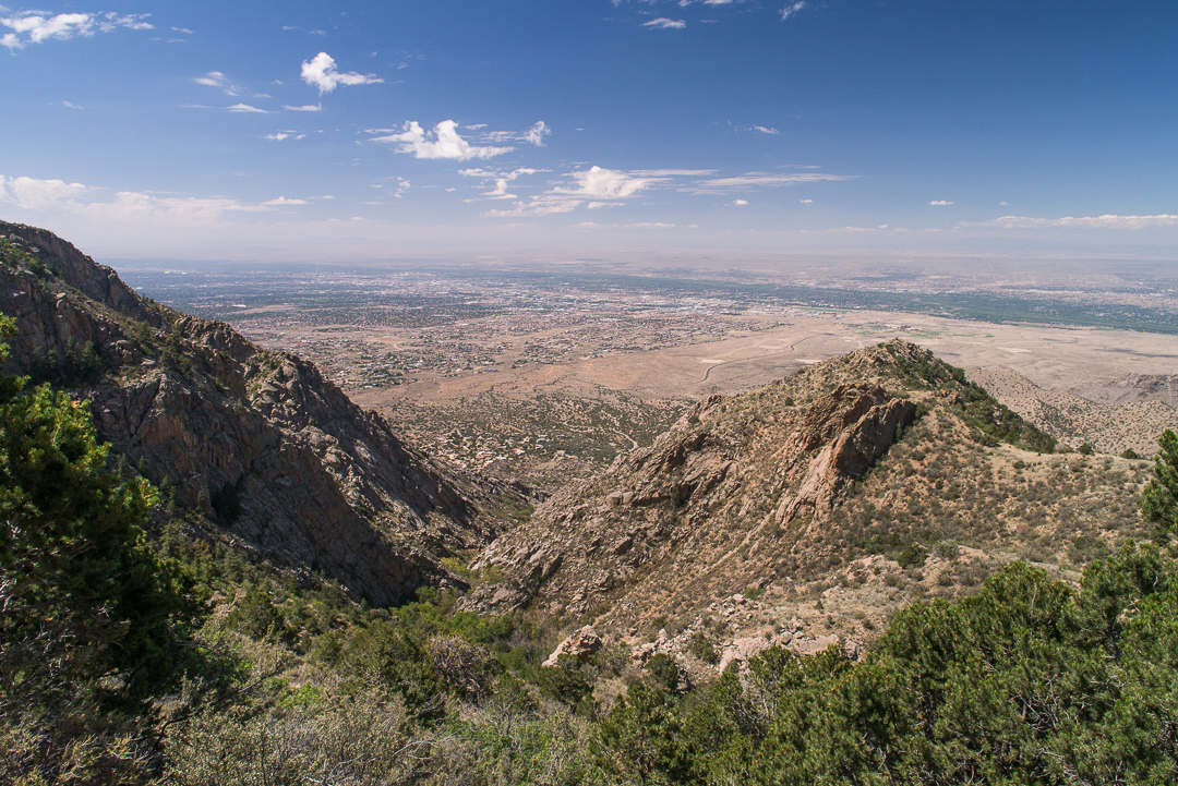 Near Albuquerque, Kim and I climbed 4500' on the way from the lower tram to Sandia Peak via the Tram Trail and then La Luz Trail.